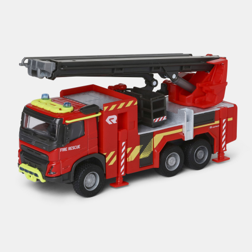 Off to the rescue! Many children dream of joining the fire brigade. This Volvo fire engine (19 cm) from Majorette is a high-end model vehicle with fold-out ladder and rubber tires, toy fire engine with light and sounds effects, for children from the age of 3 years. Suitable for indoor and outdoor use, this toy vehicle allows youngsters to go all in the world of a firefighter and learn about the functions of a fire engine. The red fire engine features moving wheels and is easy for young children to use. It also has a siren and flashing lights to alert nearby traffic. The original model comes with soft rubber tires with a tread pattern, transparent windows that reveal the detailed interior, a telescopic turntable ladder with a cage and extinguishing nozzle, and many other detailed features. The driver’s cab and platform covers are made of metal, and the other parts are made from plastic. - Light and sound effects - Feature-packed design - Transparent windows - Soft rubber tires