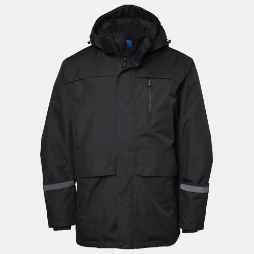 This water-repellent, insulated Volvo Parka Winter Jacket is made with fabric crafted from GRS certified recycled plastic. Helping you through the cold-weather season, the parka features pile fleece hood lining and a comfortable corduroy collar. Reflective Volvo Spread Word Mark print at the back as well as reflective foldable flaps on sleeves and reflective details throughout the jacket to keep safe and stay visible in the dark. Normal fit, longer at the back. - Zip side pockets and lid side pockets - Zip chest pocket - Volvo Spread Word Mark zip puller