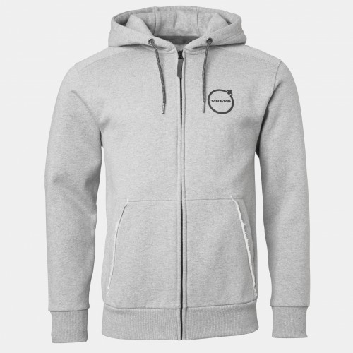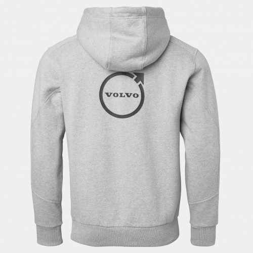 This Volvo Iron Mark grey hoodie is crafted from organic cotton and recycled cotton, a innovative way of minimizing production footprints. Designed with shoulder- and elbow décor stitch for a contemporary look, featuring the Volvo Iron Mark logo at chest and on the back. - Pockets with raw edge on openings - Extra Safety mesh pocket with zipper in right pocket. - Tubular cord runs through Hood